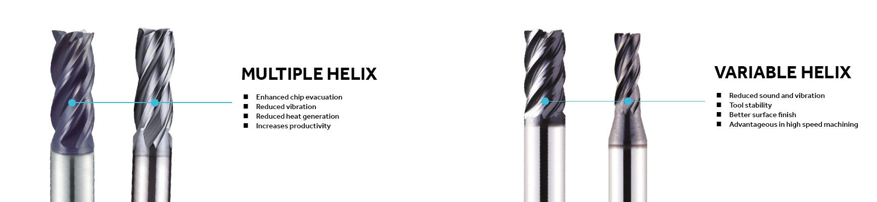 具有可变螺旋角设计的铣刀沿切削刃有不同的槽形,从而减少了加工过程中的声音和振动。通过均匀分布切削力,提高了刀具的稳定性,表面光洁度和刀具寿命。它们在高速加工和处理容易振动或颤振的材料时特别有利。
